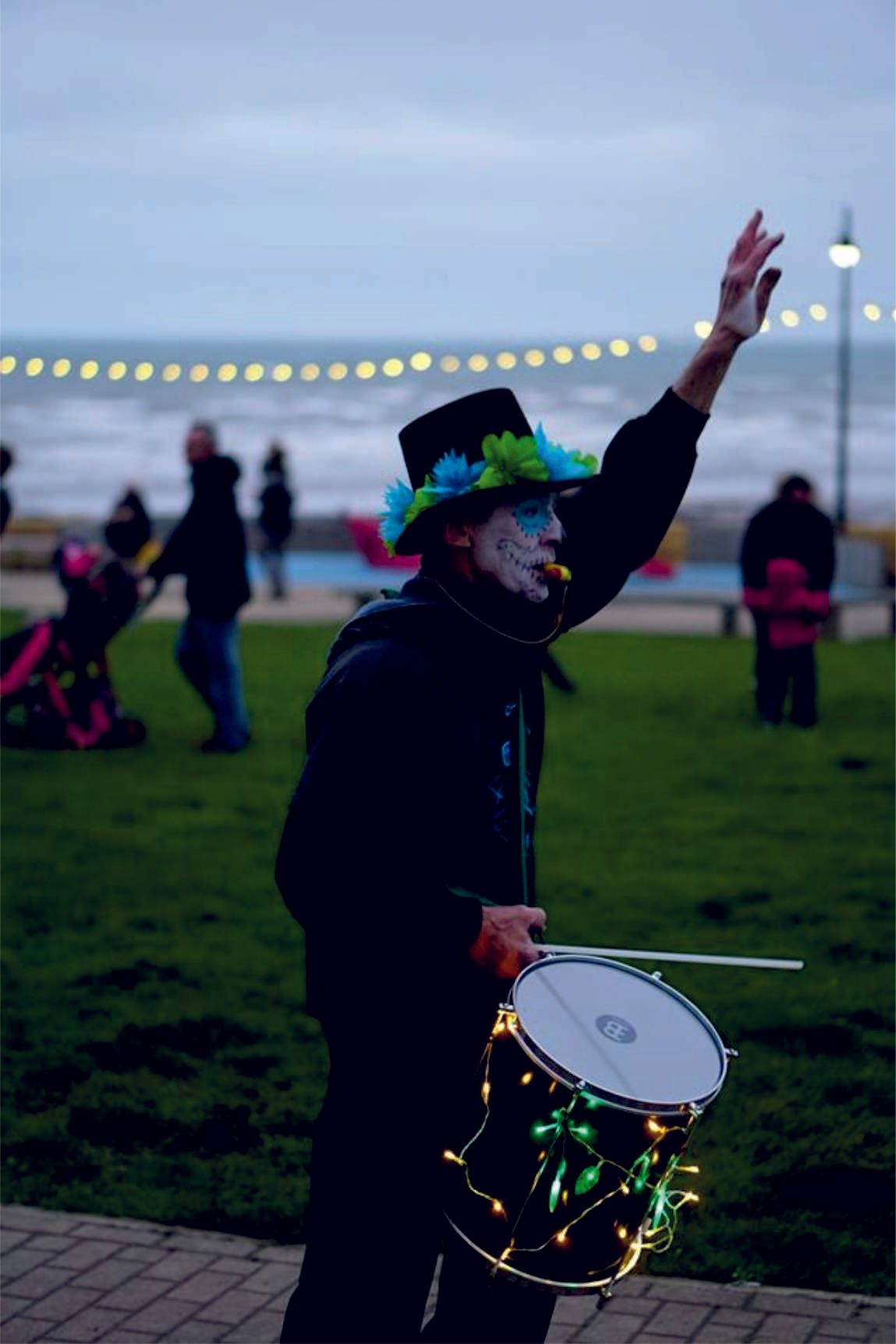 7.00-8.00 Beckon The Wyrd. Music...We wanted energy, fun, interactive to help keep the carnival spirit going. Ladies and Gentleman I present to you the band for the night of The Day Of The Dead....Beckon The Wyrd. They will be on stage from 7.00pm to 8.00pm following on from the circus performers. Going to be a fantastic night in the village.